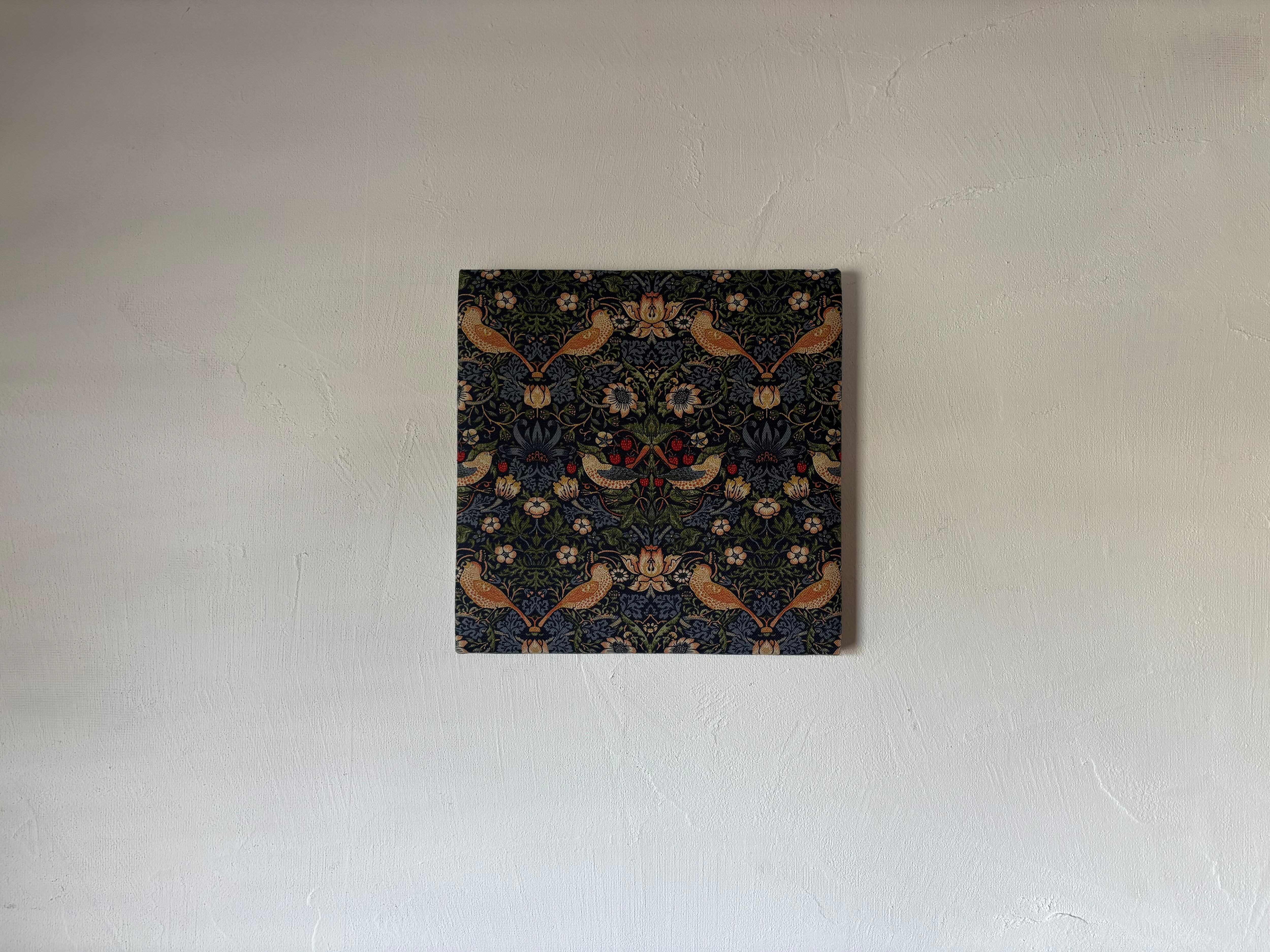 WILLIAM MORRIS/いちご泥棒 ファブリックパネル 裏面は水張テープ仕上げになっております。 size:300×300×25 ※金具は付いておりません。