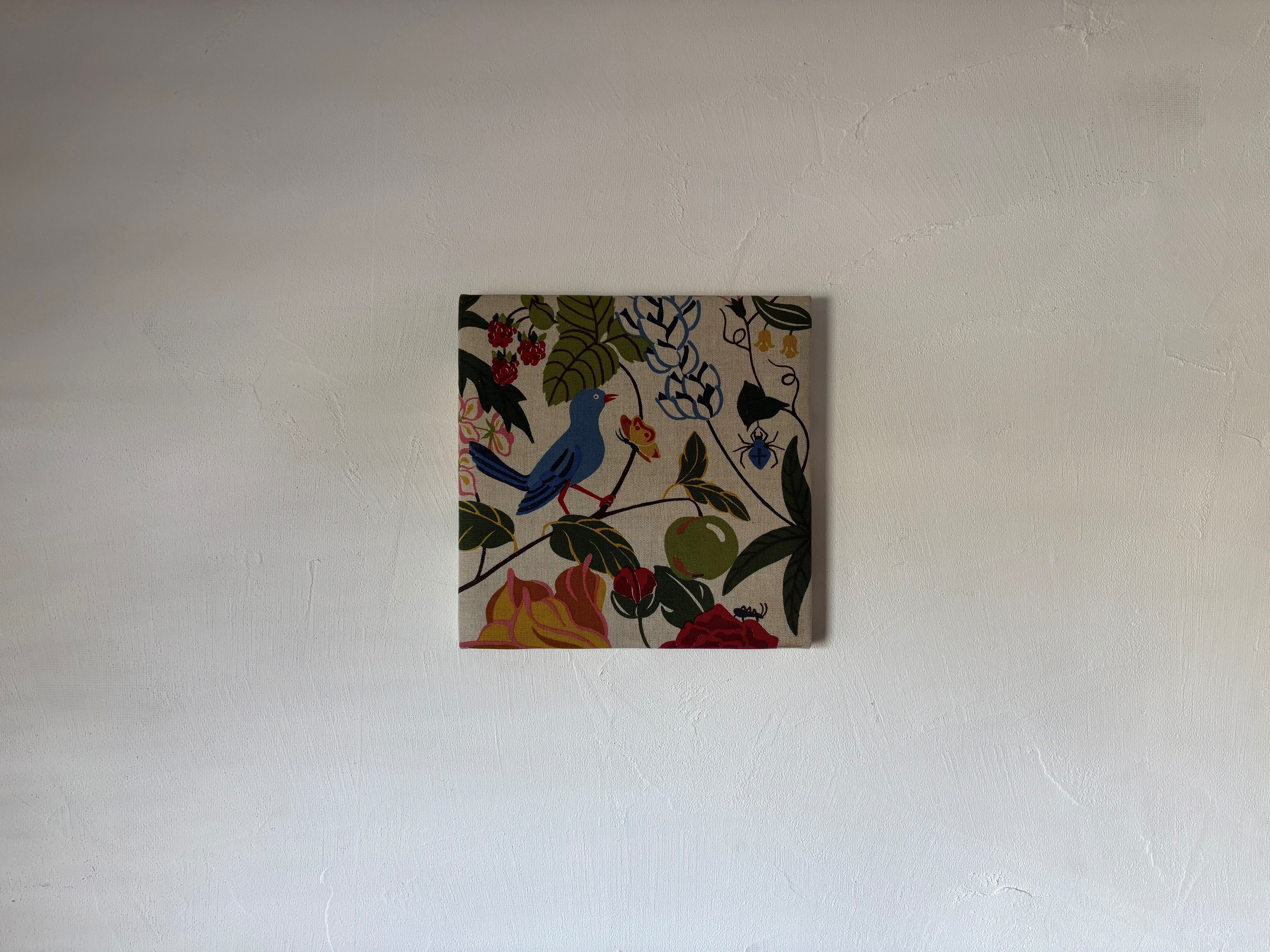 ファブリックパネル 裏面は水張テープ仕上げになっております。 size:300×300×25 ※金具は付いておりません。