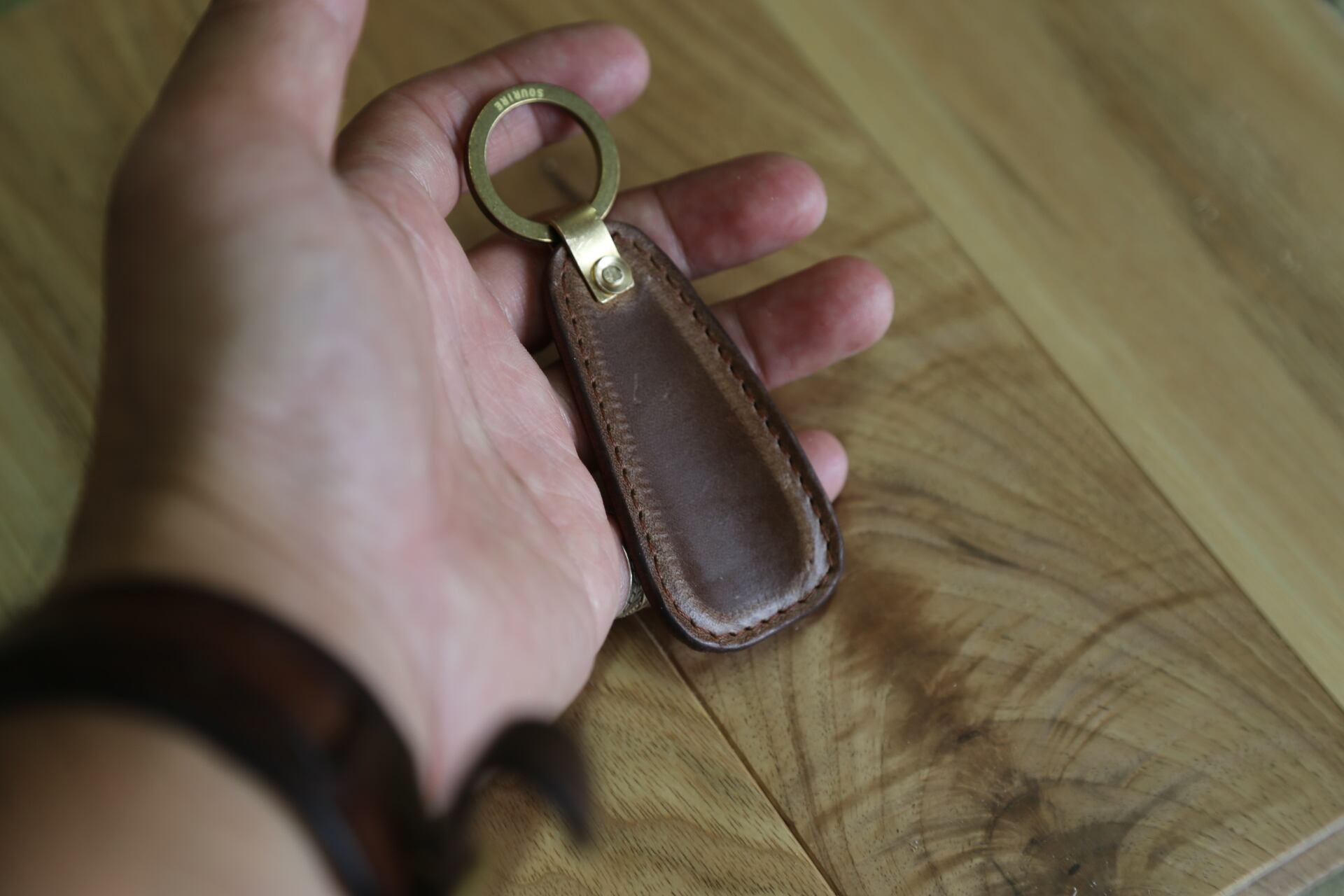 重量感ある真鍮製の芯地に高級オイルレザーを縫い込んだレザーシューホーンです。