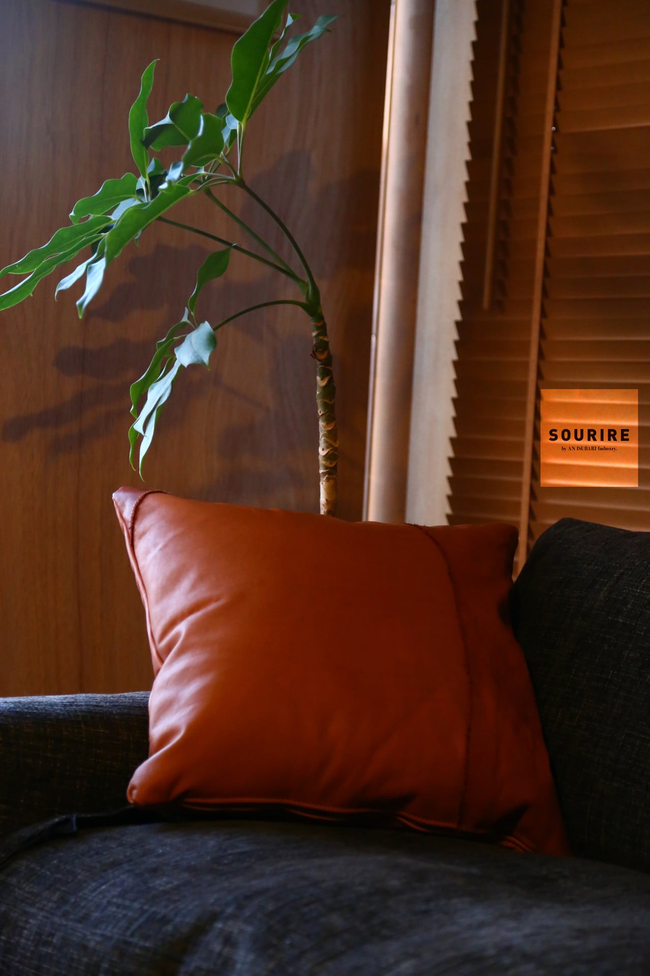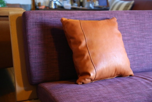 SOURIREオリジナルヌメ革を使用したクッション ソフトで良いエイジングが楽しめる。 パッチワーク仕様 本体:ソフトヌメ革 size:450×450 中身:化繊綿 color:black・camel