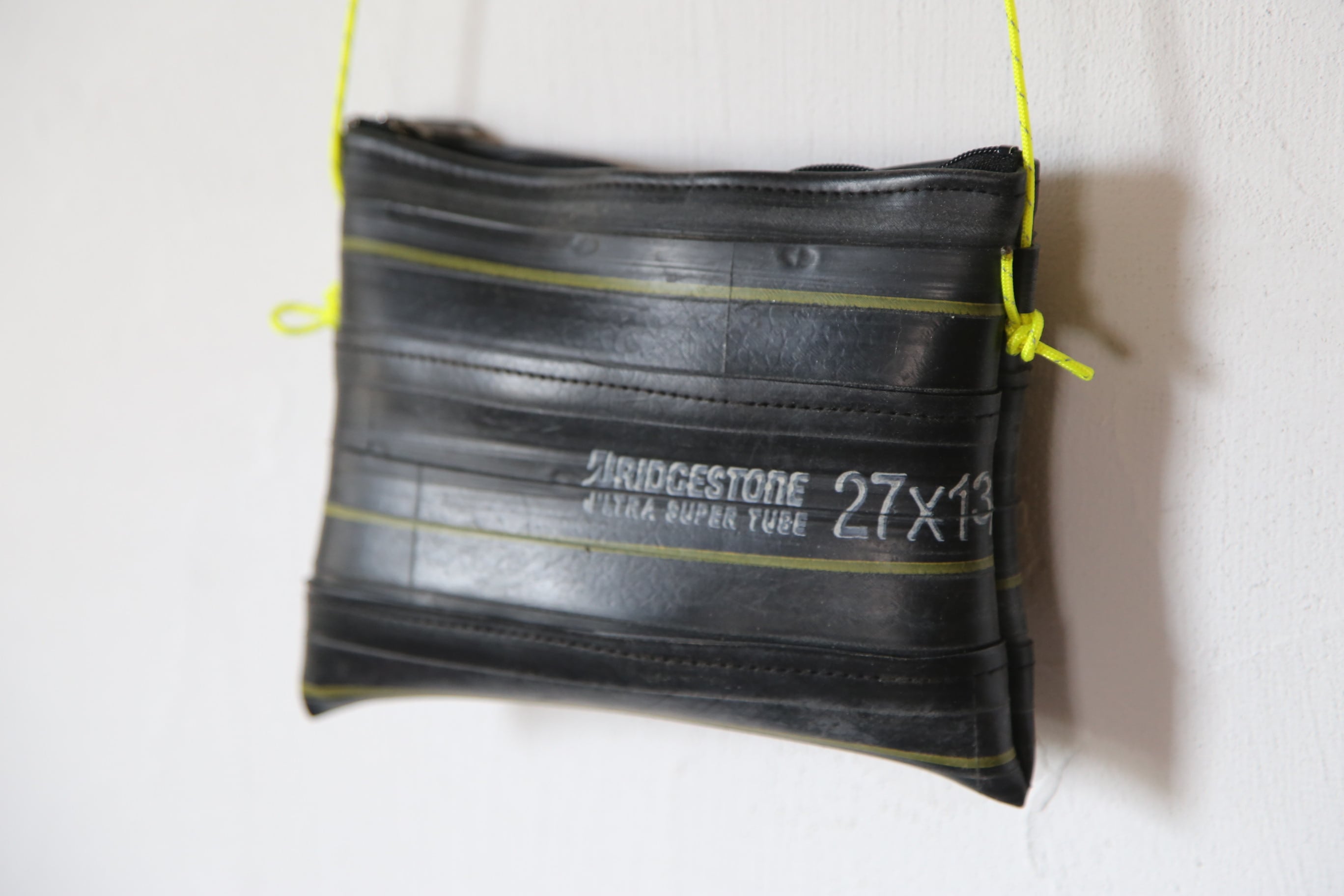 ロードサイクルやレーシングで使用されていたチューブを再利用して作られておりエコでおしゃれな一品となっています。